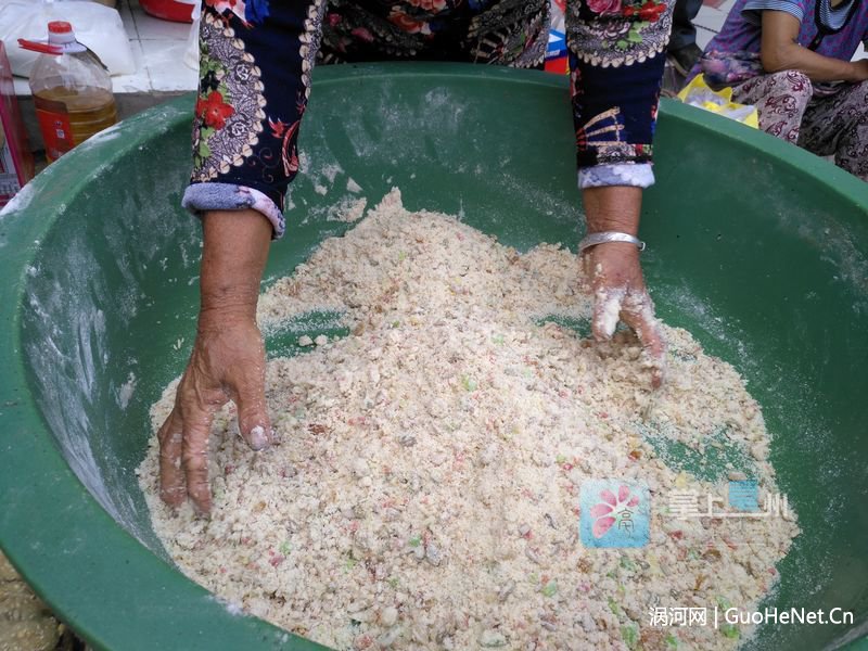 一大早,在谯城区立德镇街上,来自四面八方村庄的村民开始陆续聚集,各自带着不同原料排队做月饼。手工月饼最重要的就是馅料,芝麻仁、核桃仁、花生仁、瓜子仁、杏仁等五仁是最常用的原料,除了这些很多人还喜欢在馅料中加入蜜枣、葡萄干、冰糖等。