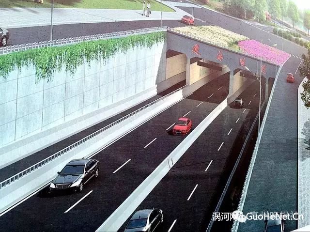 起于建安路与白果树街交口南侧,下穿人民路、涡河南路、涡河、涡河北路,终于汤陵路南侧,路线全长1280米,其中,暗埋段长660米,敞开段长360米、顺接段长260米。隧道标准断面宽度27.9米,双向四车道加非机动车道,机动车道设计时速为50km/h。