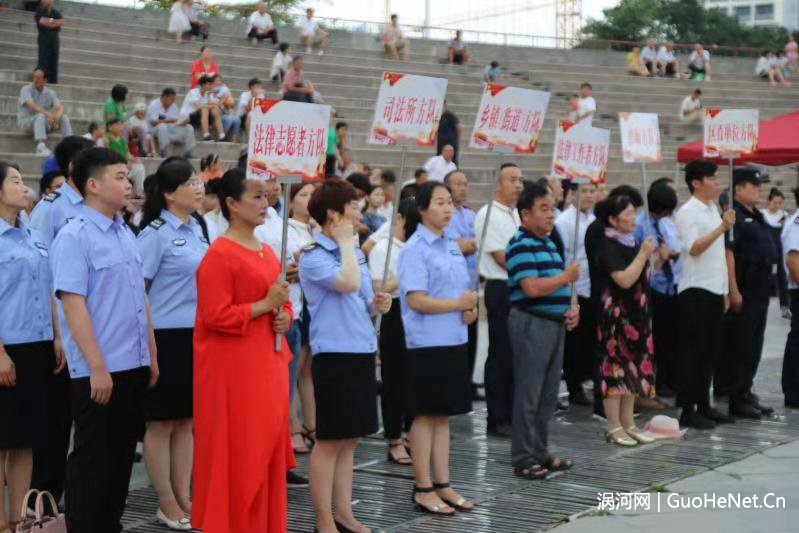 7月10日下午,亳州市谯城区在魏武广场天幕剧场举行了以“加强全民普法 树立法治信仰”为主题的“江淮普法行”启动仪式暨法治文艺演出活动。区委常委、政法委书记张志国,区人大常委会副主任陈静、区政府副区长王俊东、区政协副主席金凤翔等领导参加活动,并看望了普法宣传志愿者。