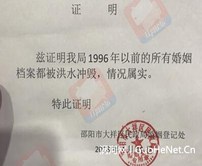 原标题:湖南一婚姻登记处开“奇葩”证明:档案已被洪水冲毁