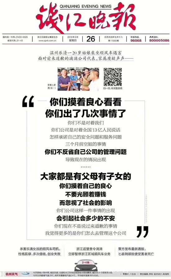 8月25日下午,在乐清殡仪馆,滴滴代表向家属道歉。家属说:“你们管理不严格的话,就是谋财害命!”