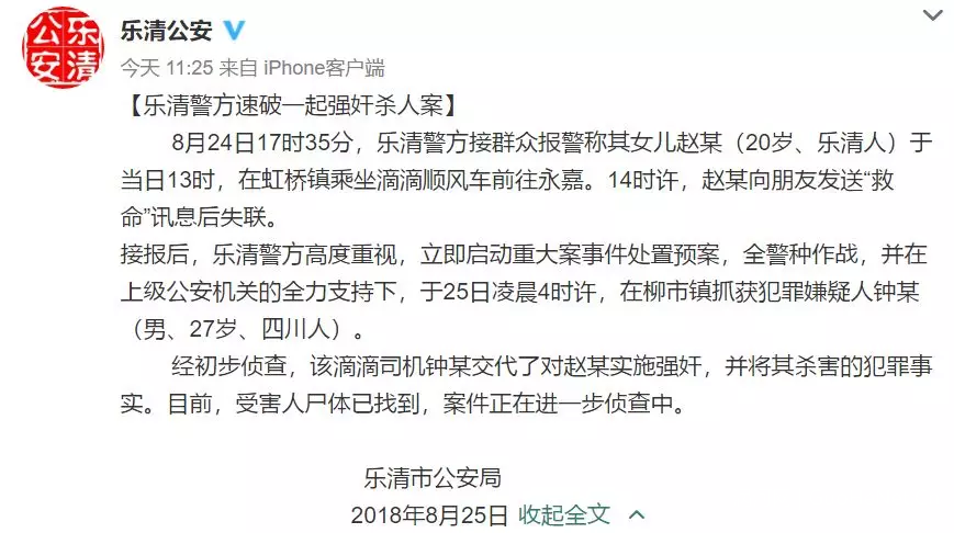 仅仅三个月前,在河南郑州,一名空姐乘客遭滴滴顺风车司机杀害,滴滴道歉、赔偿;然而三个月后,在浙江温州,又有一名女孩被滴滴顺风车司机杀害。不同的是,这次是在白天。