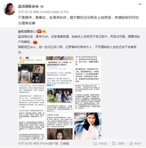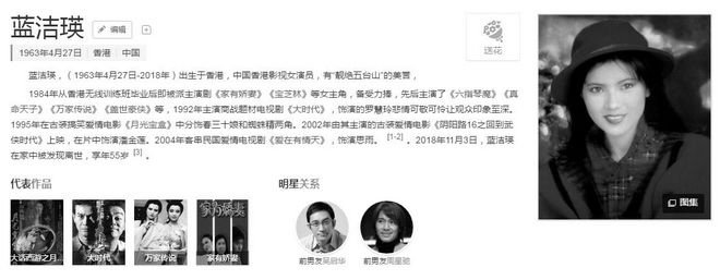 ![]() 蓝洁瑛曾在1995年的电影《月光宝盒》中分饰春三十娘和蜘蛛精 11月3日,演员蓝洁瑛被传在住所中猝死,享年55岁。蓝洁瑛影迷会微博确认了消息的真实性,并表示“不是据传,是事实,走得很安详,警方暂时还没联系上她家姐,希望能够好好的办理身后事。”但在百度百科蓝洁瑛词条中,到截稿时暂没能标注蓝洁瑛具体的去世日期,只是模糊的写上2018年。 ![]() 百度百科蓝洁瑛词条中,到截稿时暂没能标注蓝洁瑛具体的去世日期 作为中国香港影视女演员,蓝洁瑛曾有“靓绝五台山”的美誉。从1998年开始,蓝洁瑛的负面新闻不绝于耳。在1998年9月发生车祸后,蓝洁瑛大失常态,语无伦次;1999年4月,她因为服食过量药物产生幻觉,被送进尤德医院精神病房治理。2004年1月24日,报警声称要自杀。2005年申请破产。2004年之后,蓝洁瑛几乎就没有再接拍过任何影视作品,也由此断了生计。据称,她靠着救济金度日,这点她并未否认,还披露,有人定期会接济她,日子还过得下去。 ![]() 蓝洁瑛影迷会微博肯定了消息的真实性 蓝洁瑛曾在1995年的电影《月光宝盒》中分饰春三十娘和蜘蛛精两角为中国内地观众所熟知。如今香消玉损,网友们不禁感叹“蜘蛛精”再也不存。 |