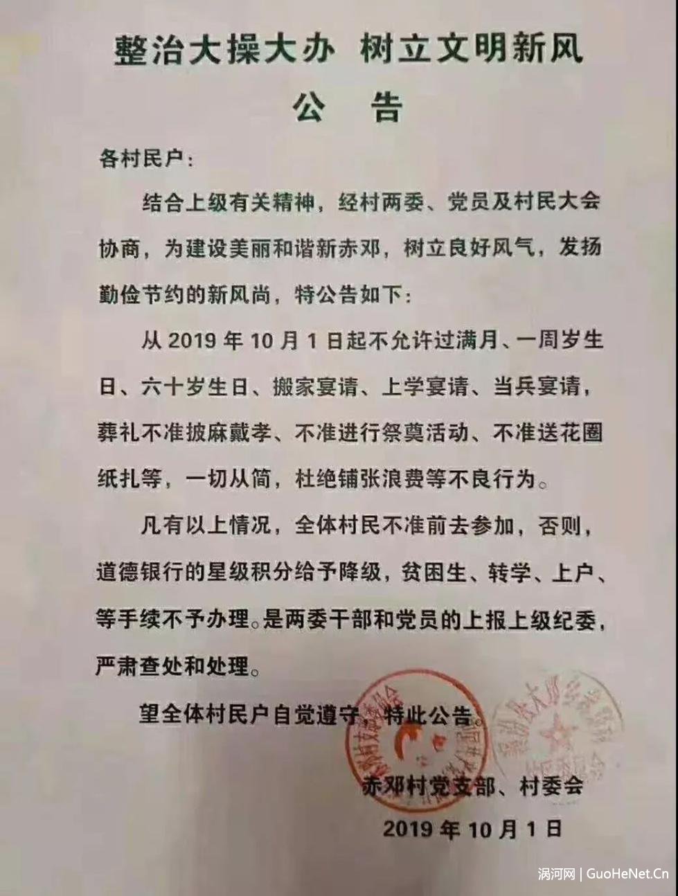 昨天,山西省襄汾县赤邓村因一则公告,闻名全国。公告语气严肃,行文直白——“10月1日起,不允许过满月、一周岁生日、六十岁生日、搬家宴请等,葬礼不准披麻戴孝、不准进行祭奠活动、不准送花圈纸扎等,一切从简,杜绝铺张浪费等不良行为。”
