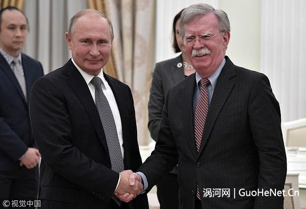 俄罗斯总统普京和美国家安全顾问博尔顿(视觉中国) 10月24日电 当地时间23日,俄罗斯总统普京同美国国家安全顾问博尔顿会面,会面过程中,普京表示,他愿意于11月初在巴黎举行的一战结束纪念活动中,同美国总统特朗普举行会晤。但是,普京和博尔顿在《中导条约》一事上谈得似乎并不顺利。博尔顿更在之后的新闻发布会上表示,是俄罗斯在欧洲违反了《中导条约》的规定。