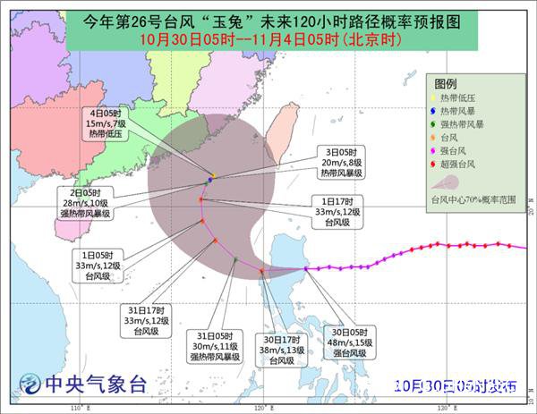 中央气象台10月30日06时继续发布台风预报: